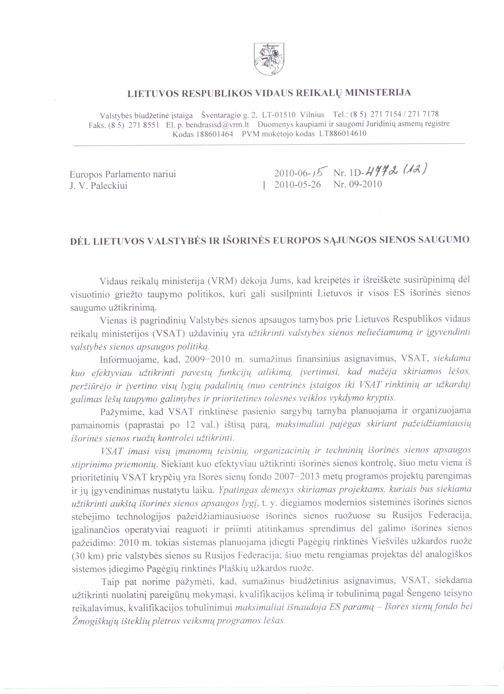 Vidaus reikalų ministro atsakymo tekstą rasite pridėtame dokumente (pdf formatu).