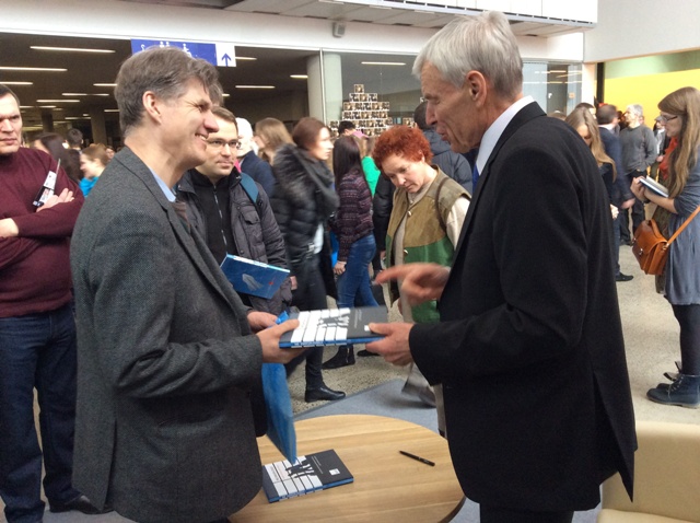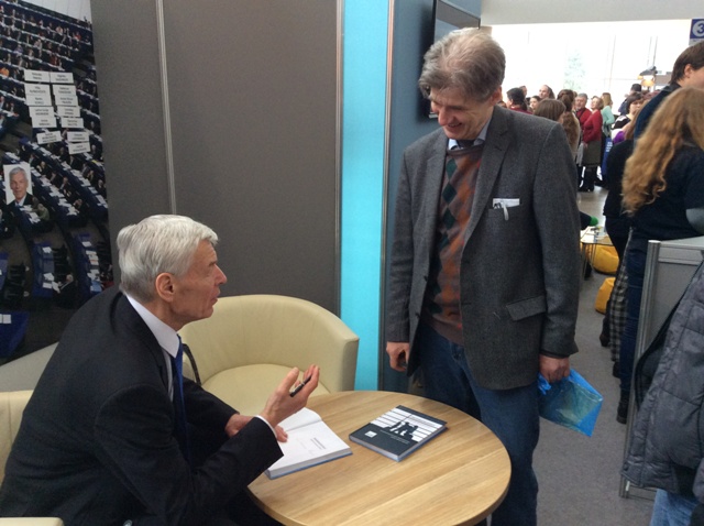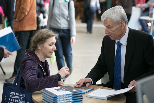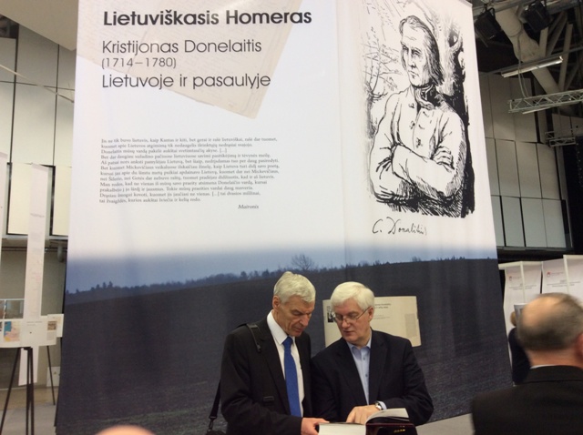 Knygų mugėje - K. Donelaičio ženklai. Justas Paleckis ir Vilius Kavaliauskas
