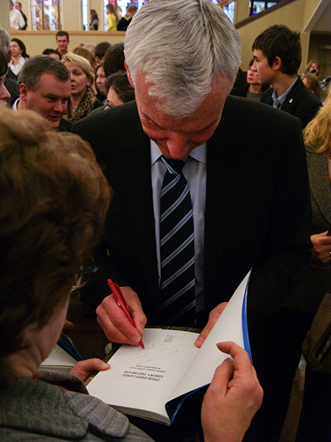 Daugybė autorių norėjo gauti Justo palinkėjimą ir parašą į knygą