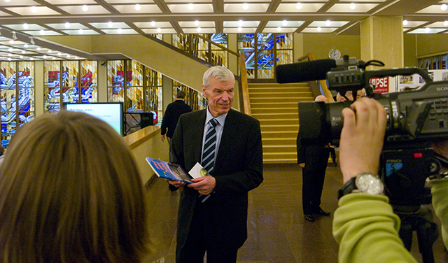 Justas Paleckis žurnalistams pasakoja apie išleistą knygą ir pradedamą naują aplinkosauginę akciją