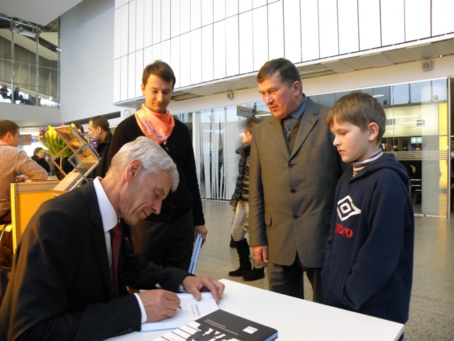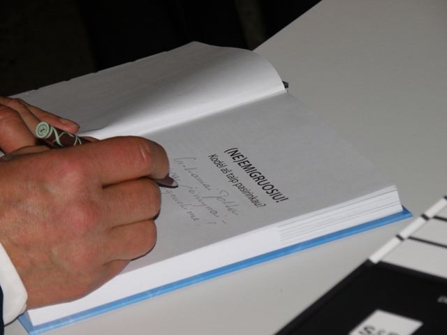 MEP Justas Paleckis signs a book for a small Justas