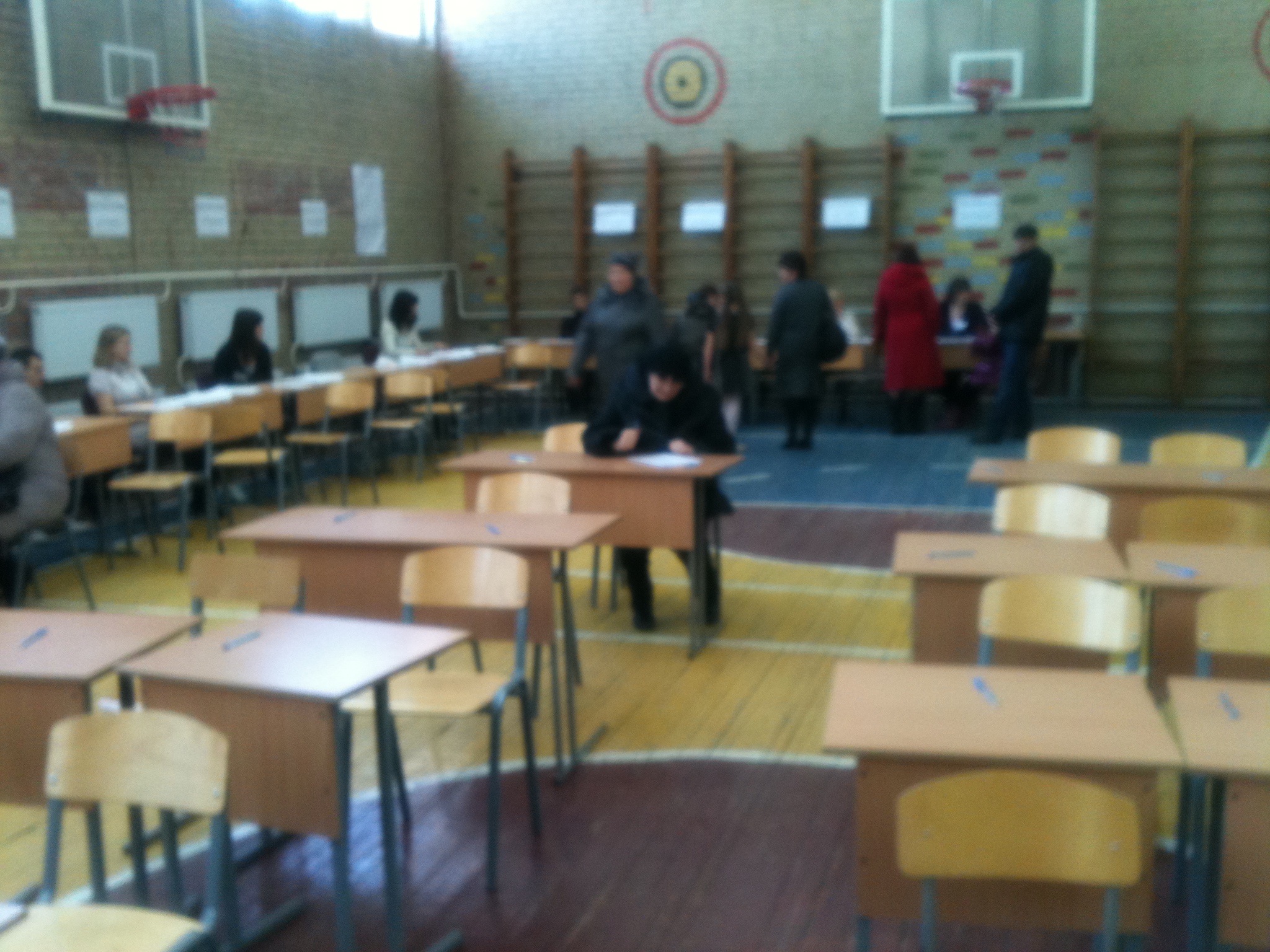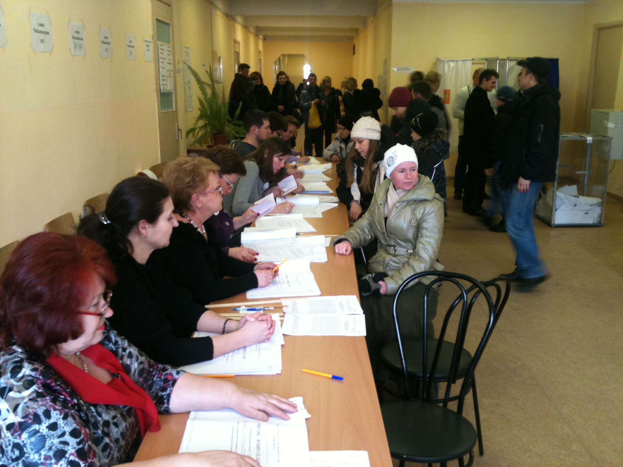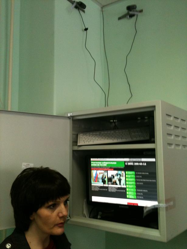 One videocamera targets a voting box, another - registration tables
