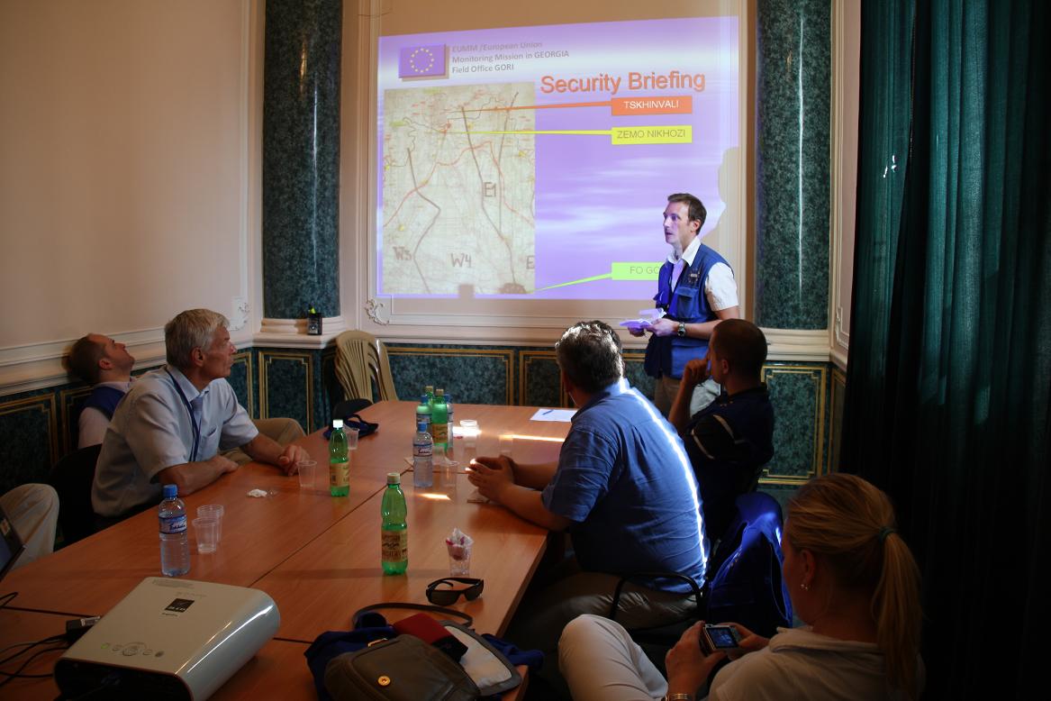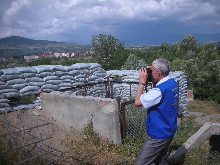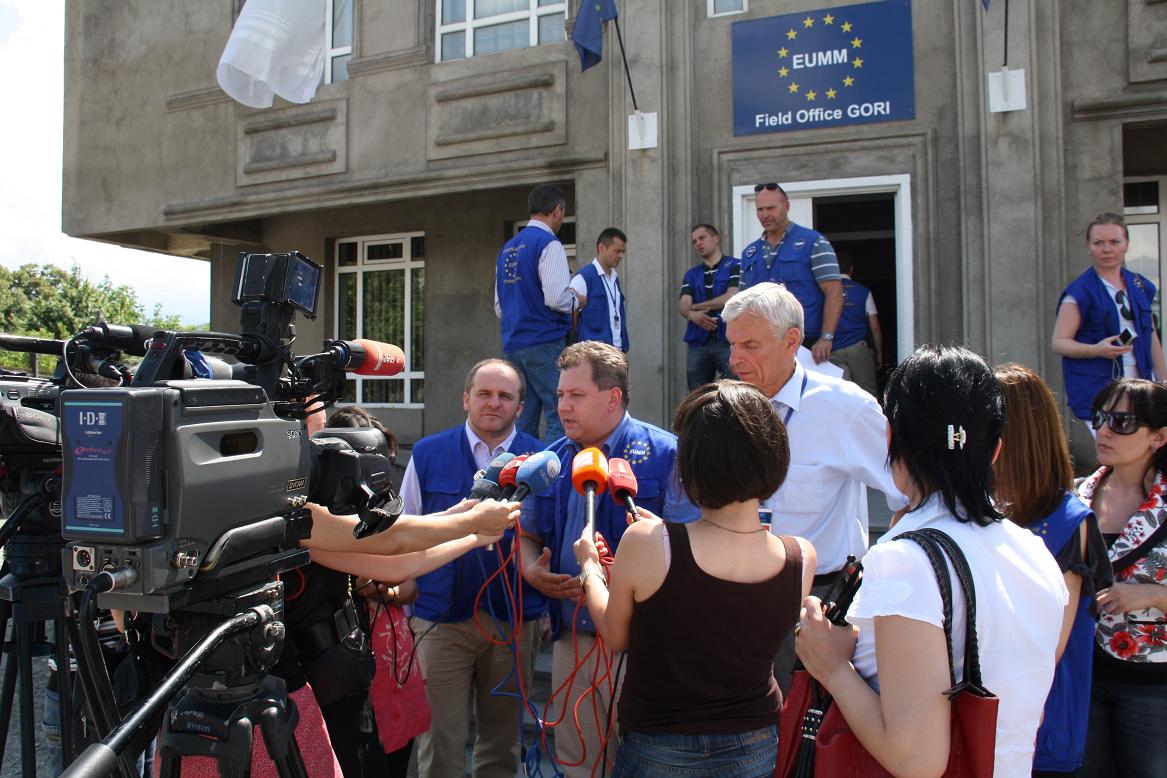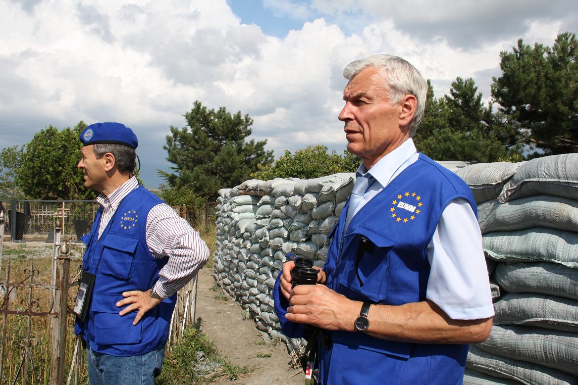 In EU Monitoring Mission uniforms; ready to go to the temporary border line